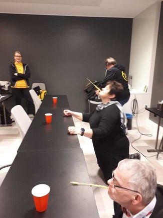 Tehtäviä oli useampi ja jokaisesta osakilpailusta tippui kilpailijoita pois, lopuksi finaalissa kisasi kolme huippua ja heillä oli sorminäppäryys lopputehtävänä. Tuloksin 1. Anna-Maarit 2. Marjukka ja 3. Pentti palkitsimme kolmenkärjen.